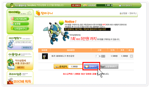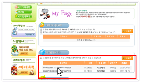 | È®ÀÎ ¹öưÀ» ´©¸£¸é ¾ÆÀÌÅÛ ±¸¸ÅÀýÂ÷°¡ ³¡³ª°Ô µÇ¸ç ±×µ¿¾È ÀÌ¿ëÇß´ø ¹Í¸¶»óÁ¡ °Å·¡³»¿ªÀÌ Ç¥½ÃµË´Ï´Ù. | ||