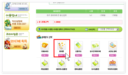 ¹Í¸¶»óÁ¡ÀÇ °áÁ¦ ¹æ¹ýÀº ARS,ÇÚµåÆù,½Å¿ëÄ«µå,¹«ÅëÀåÀԱݵîÀÌ ÀÖÀ¸¸ç ÀÌÁß Æí¸®ÇÑ °áÁ¦¹æ½ÄÀ» ÀÌ¿ëÇÏ¸é µË´Ï´Ù. |