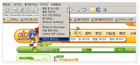 ¨ç »ó´Ü ÀÎÅÍ³Ý ÀͽºÇ÷η¯ ¸Þ´º¹Ù¿¡¼ [µµ±¸]-[ÀÎÅͳݿɼÇ]À» ¼±ÅÃÇÕ´Ï´Ù.