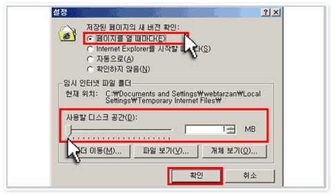¨ê ÀúÀåµÈ ÆäÀÌÁöÀÇ »õ ¹öÀü È®ÀÎÀ» [ÆäÀÌÁö¸¦ ¿ ¶§¸¶´Ù]·Î ¼±ÅÃÇϰí, ÀÓ½ÃÀÎÅÍ³Ý ÆÄÀÏÆú´õÀÇ »ç¿ëÇÒ
